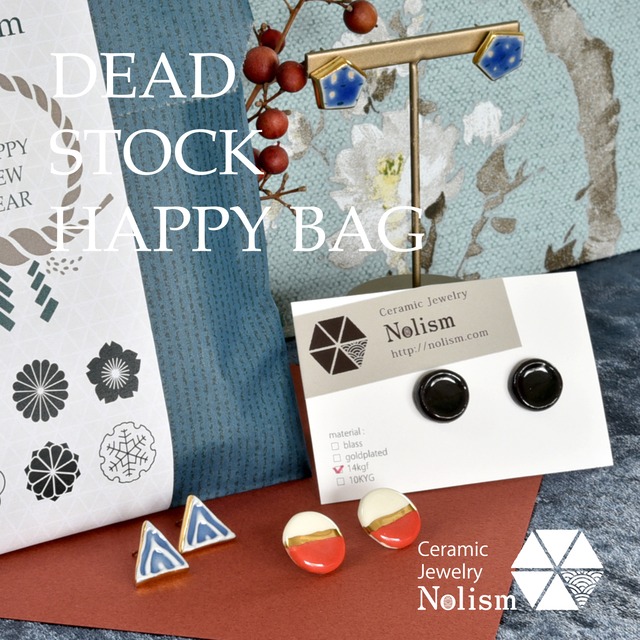 ※こちらの商品は予約アイテムとなっております。 お品物のご発送は【2026/1/14】以降順次となりますのでご注意ください。 やきものジュエリーのお得なHAPPY*BAG 約10000円相当のアイテムをランダムで詰めております。 ※デッドストック品の為、定番商品とテイストが若干異なるものがございます。 お送りするアイテムは3種からお選びいただけます。 ・ピアス セット ・イヤリング セット ・ブローチ セット 各セット1袋につき3~4点、中身は完全ランダムでお届け致します。 新春の運だめし気分で、何が届くか楽しみにお待ちください! (画像のアイテムは一例です) ※ご購入個数の制限はございません。 複数個数ご購入の場合は、各福袋の中身が出来る限り被らないようにさせていただきます。 お手持ちのアイテムと被っている等でのご交換は承ることができませんのでご注意ください。 アクセサリーの金属パーツはメッキ、チタン、14kgf、真鍮など混在しております。 パーツのご交換をお受けすることはできませんので、 金属アレルギーをお持ちの方はご注意くださいませ。 --------------------------------------------------------- 【作品について】 ・初期不良以外の返品・交換は受け付けておりません。 お品物に不具合がございました場合は、お受け取り後1週間以内にご連絡くださいませ。 素材についてよくご質問いただく内容や、お直しについて記載しております。 詳しくはこちら https://nolism.com/sozai/ --------------------------------------------------------- 【発送方法について】 作品によって下記のうちご利用いただける発送方法を設定しております。 以下よりご希望の物をお選びくださいませ。 発送方法について詳しくは こちら https://nolism.com/delivery/ ・ネコポス : 全国一律240円 (ポスト投函) 合計金額が1万円以上の場合は、お品物の量に合わせて<宅配便コンパクト>or<ヤマト宅急便>にてお送りいたします。 --------------------------------------------------------- 【梱包について】 ・台紙にセットして袋にいれてお送りいたします。 緩衝材で梱包しお送りいたします。(台紙の色はお選びいただけません) ・HAPPYBAGのアイテムはラッピングを承ることはできません。 予めご了承ください。