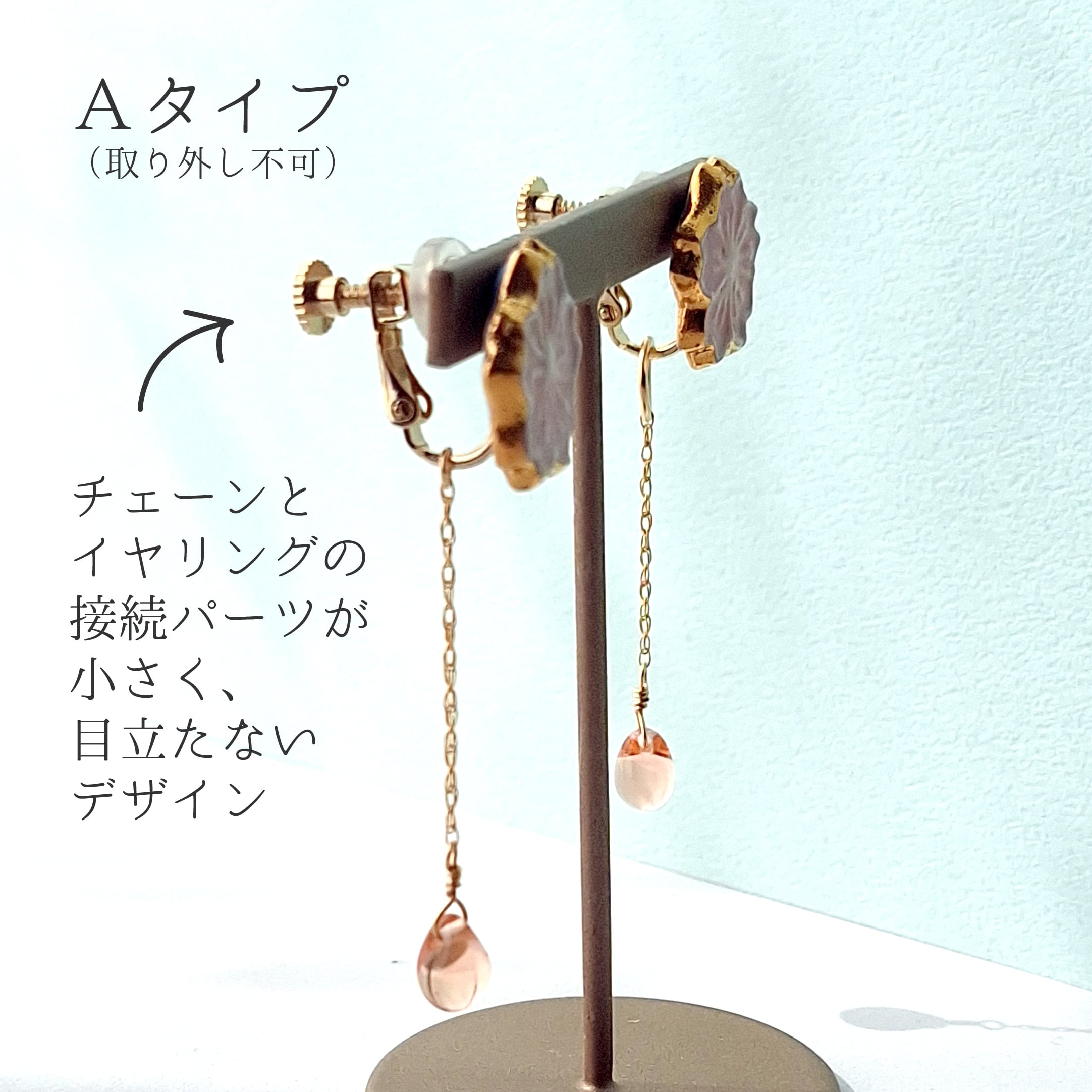 下記の耳飾りに追加してお使いいただける、チェーン付きチャームのご紹介です。