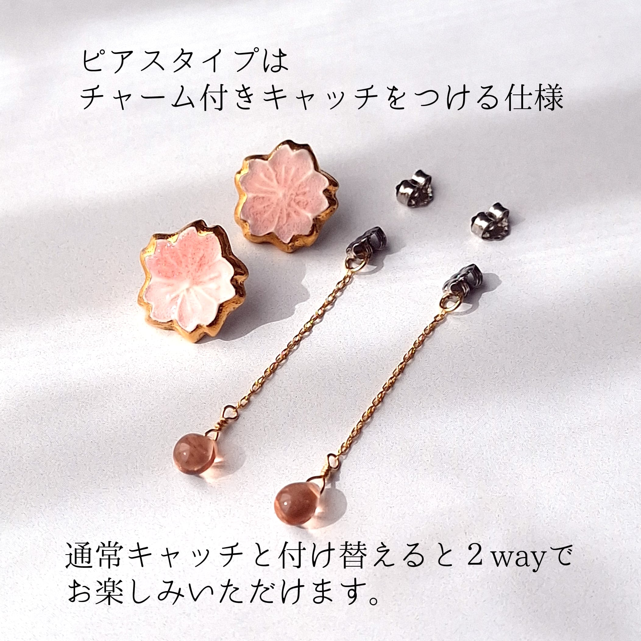 「紋-mon-桜ピアス」を最初からチェーンチャーム付きでご注文される方で、通常キャッチも欲しいという方もこちらをご選択ください。