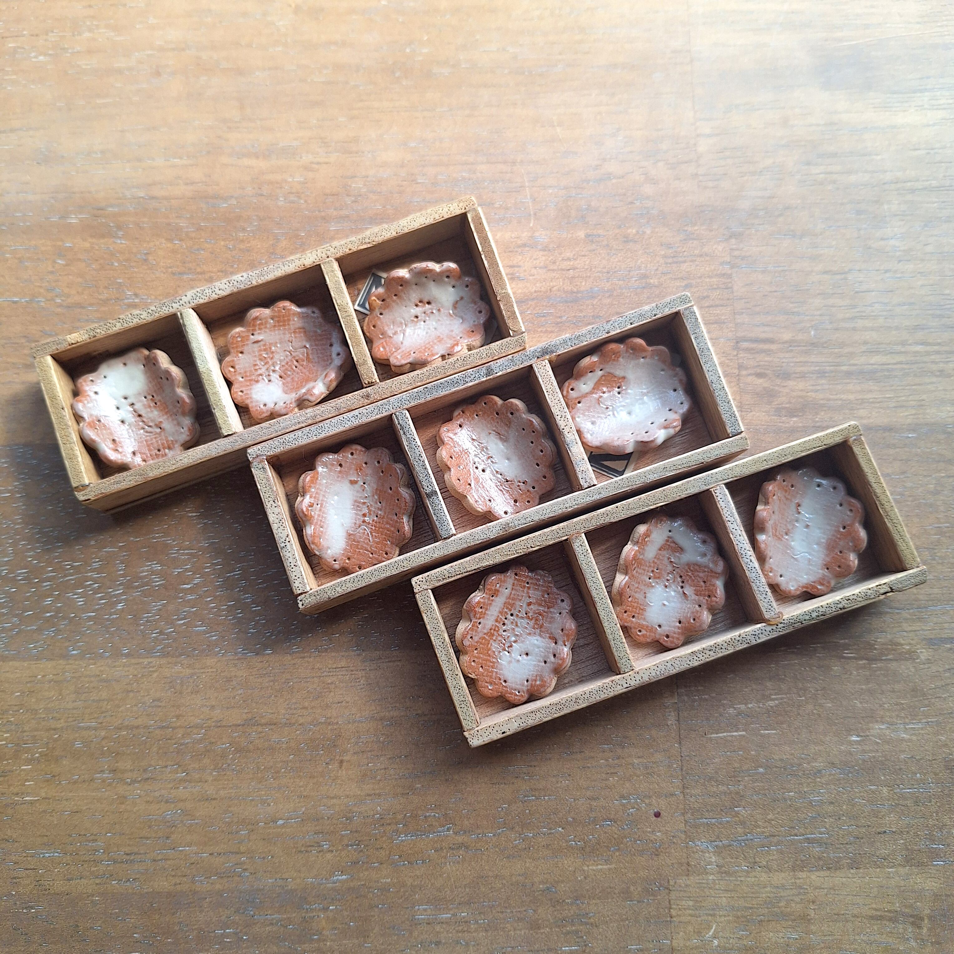 陶器でできたおいしそうなビスケットの箸置きです。