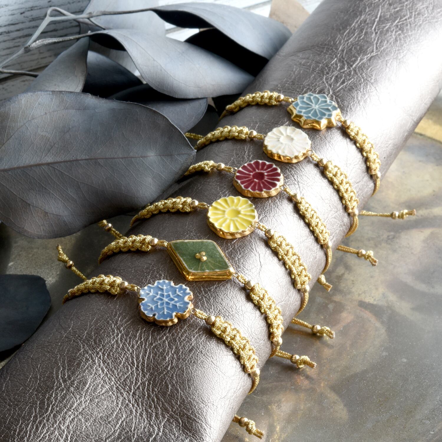 夏限定【陶器】紋-mon- 和の草花のコードブレスレット