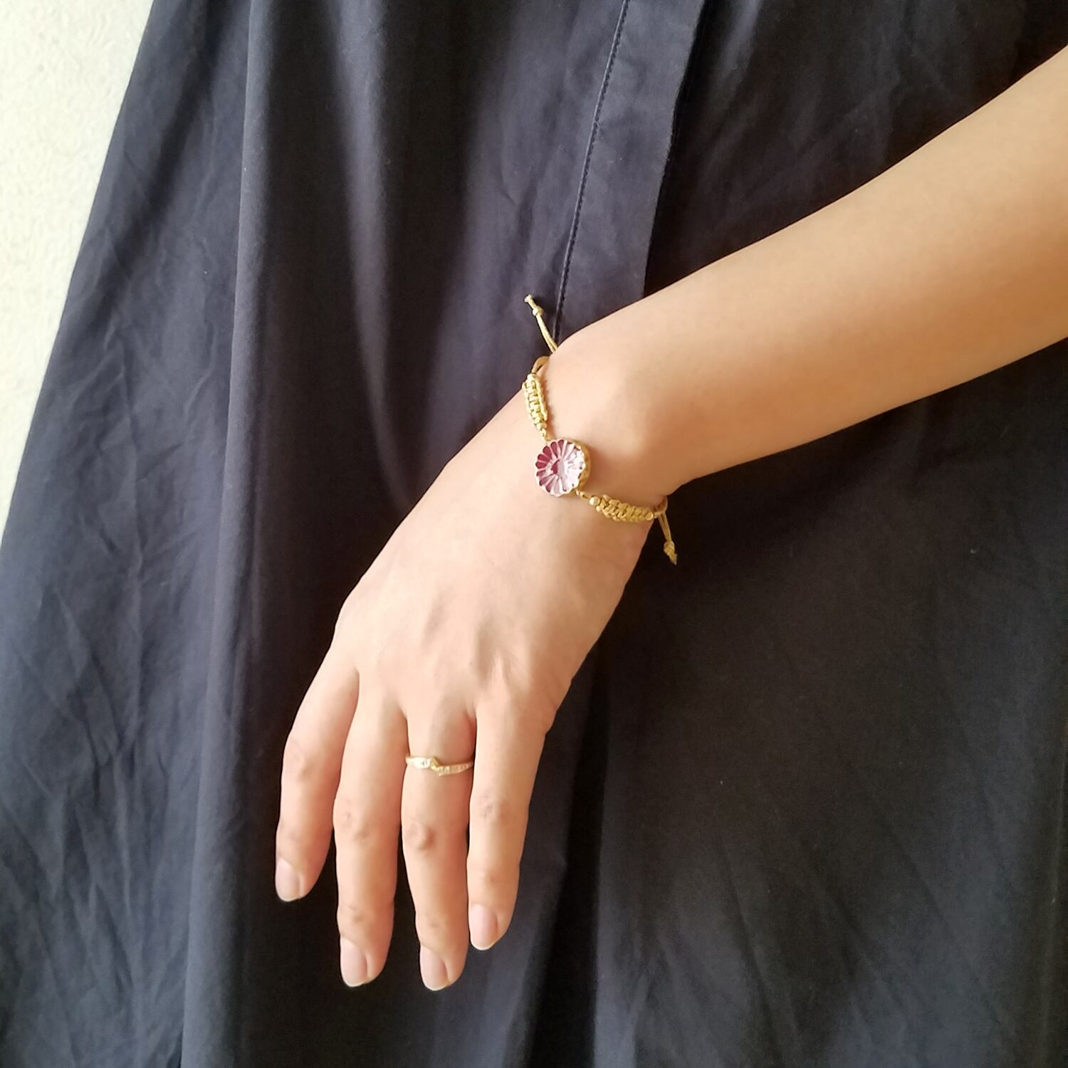 ちょっと和を感じるコード編みブレスレットです。