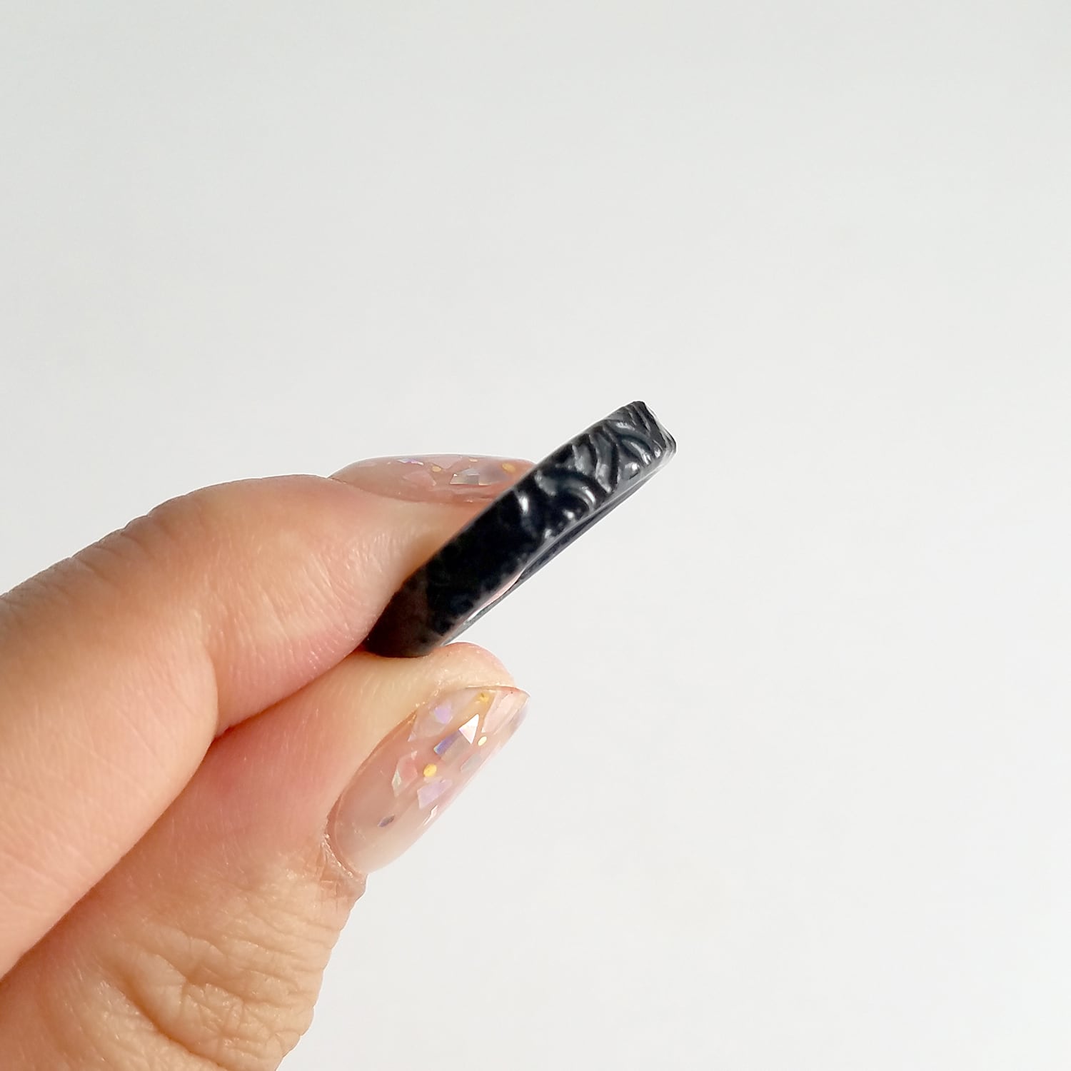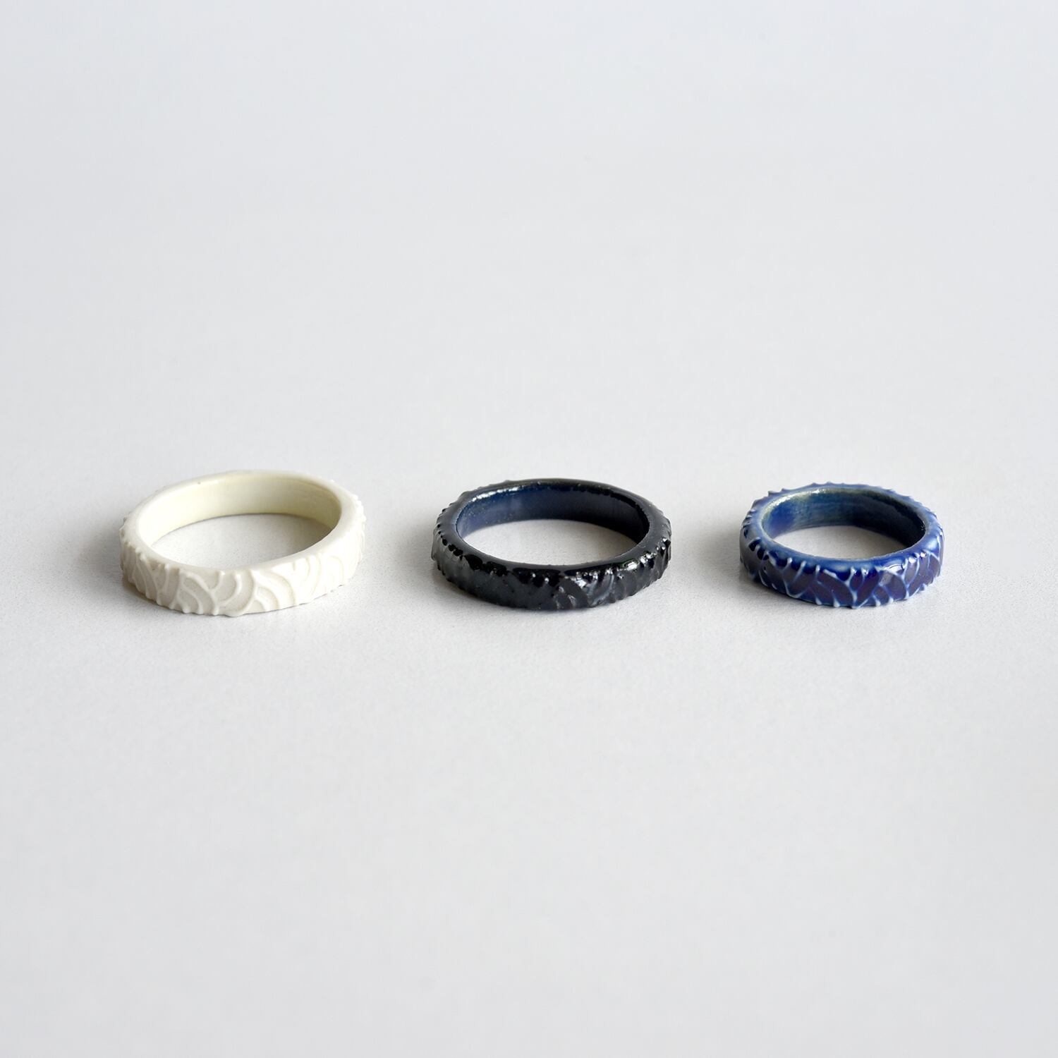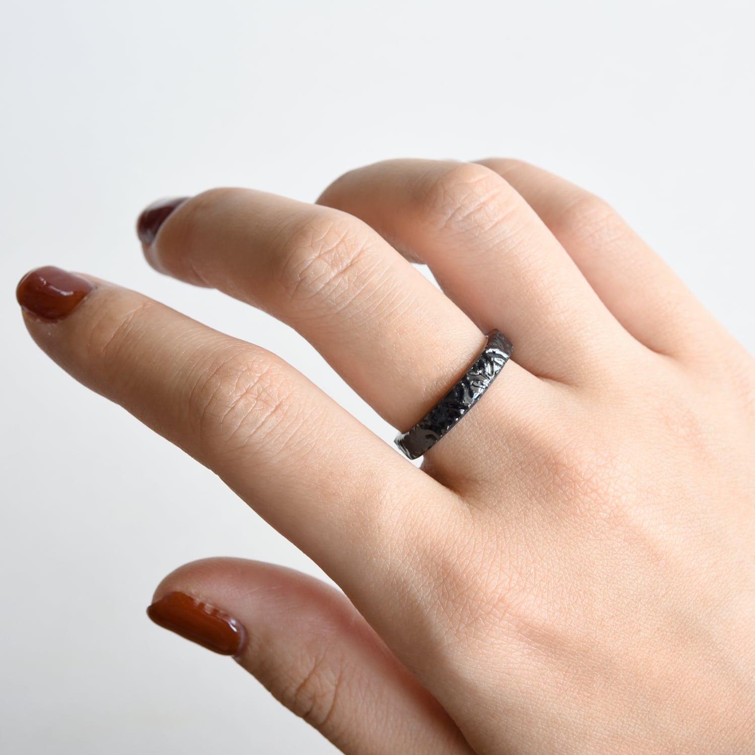 幅広のリングの為、一般的な金属製の細身なリングに比べると太め(号数が大きいもの)を選んでいただく必要がございます。