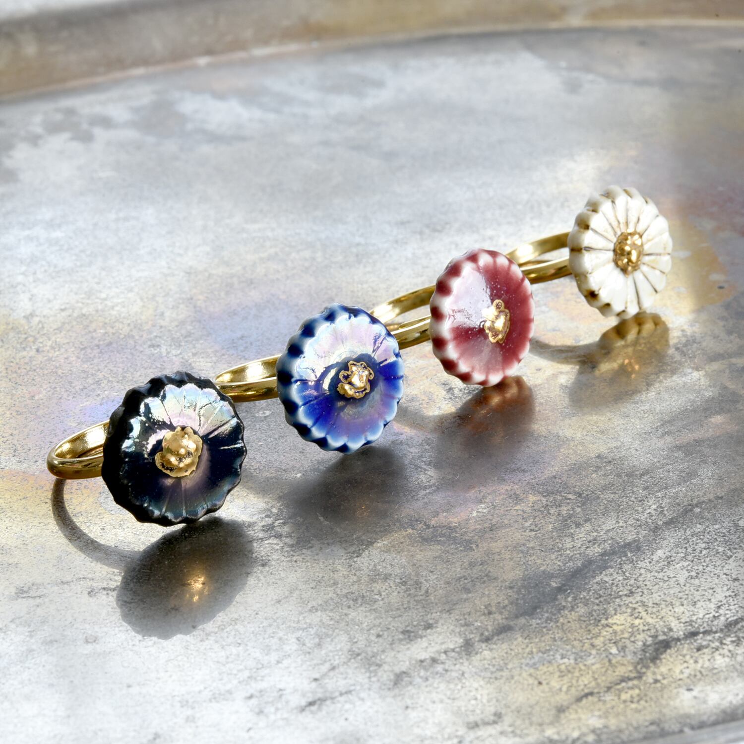 秋限定【陶器】こっくり秋色 菊花の指輪(4色)|やきものジュエリー