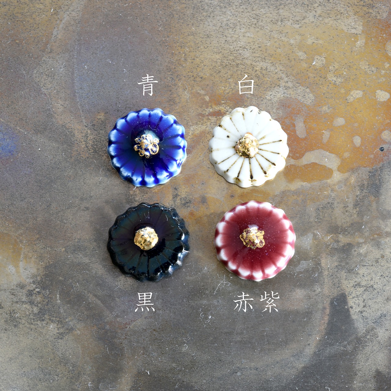 モチーフ部分 : 磁器(青・赤紫・白)、陶土(黒) / W17 D4.5 H17(mm/約3~4g)