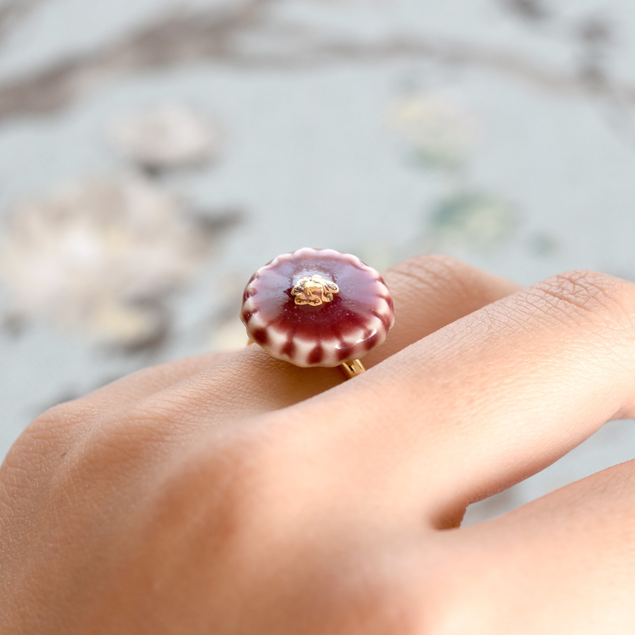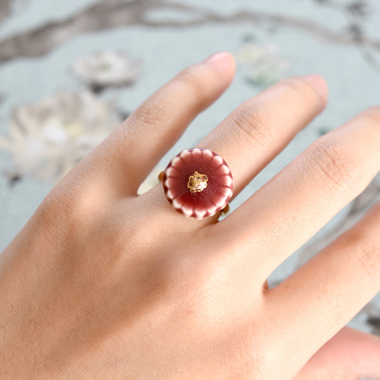 ダークカラーのマム(菊)やダリア等、菊科の花々をイメージした陶磁器の指輪です。