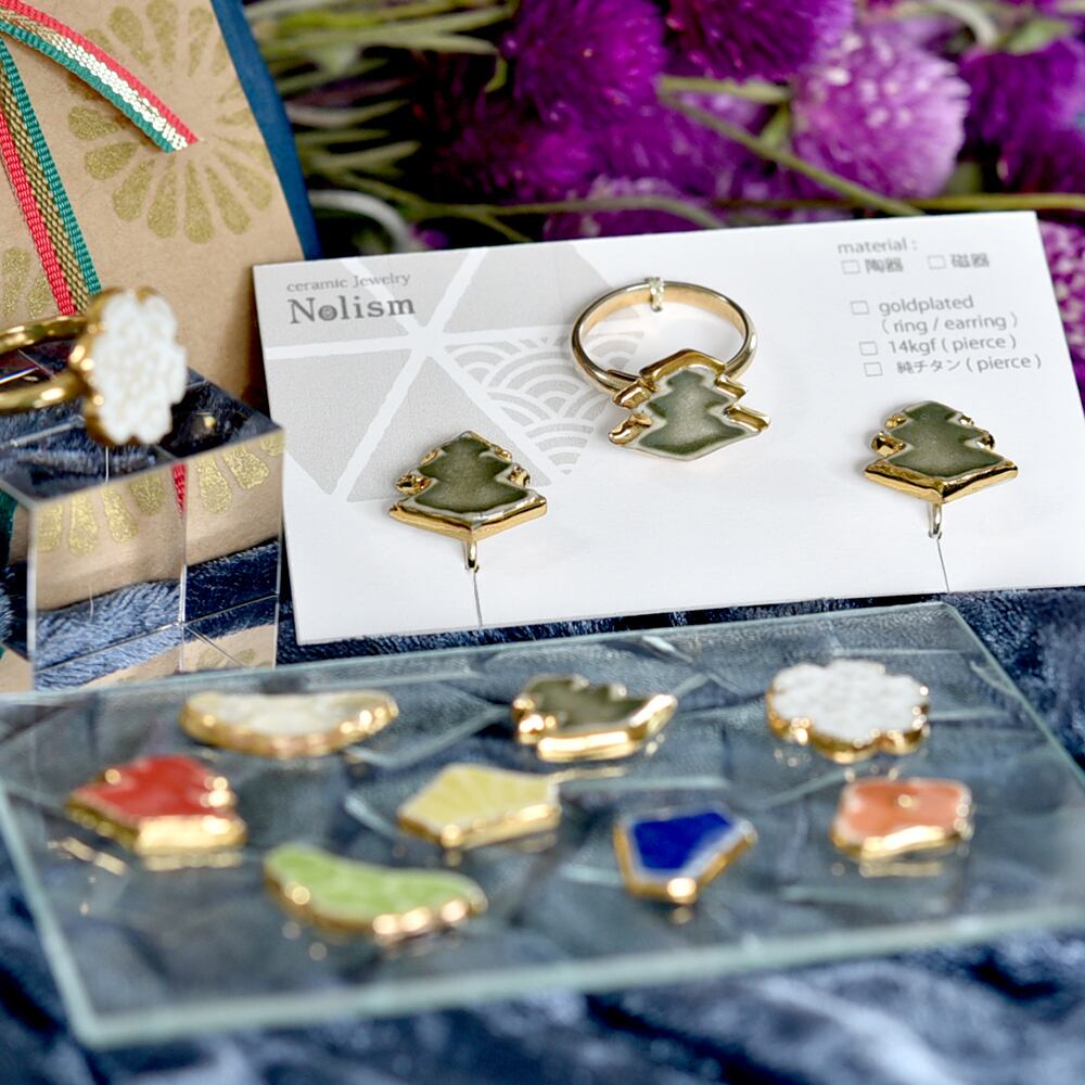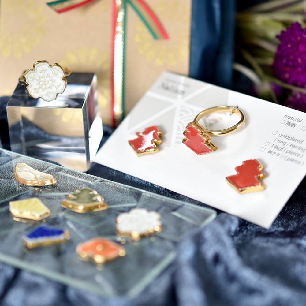 【モチーフを選べる】 陶器のほんのり和なピアスと指輪のコフレ日本の伝統的な「家紋」をモチーフにデザインした日常に取り入れやすい "ほんのり" 和なジュエリー。ピアスと指輪のホリデーセットです。¥6,930